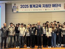 경제인투데이 류현민 기자 | 국가데이터처 통계인재개발원은 12월 9일 대전 통계센터에서 『2025년 청소년 실용 통계교육 지원단』 활동 성과를 공유하고 노고를 격려하는 교육 지원단 해단식을 개최했다. 통계인재개발원은 지난 5월, ‘청소년 실용 통계교육 지원단’25개팀, 대학생 100명을 선발했으며, 이들은 실용 통계교육을 희망한 전국 103개 초․중․고교 및 학교밖 청소년지원센터(꿈드림)를 직접 방문하여 학생 눈높이에 맞춘 체험 위주의 통계교육을 진행해 왔다. 교육 프로그램은 통계를 쉽고 재미있게 이해하도록 통계포스터 작성, 공학도구 ‘통그라미’ 실습 등 실용적인 활동으로 구성하여 학생들의 올바른 통계적 사고를 기를 수 있도록 지원했다. 해단식에서는 교육지원단 대학생에게 수료증을 전달하고, 지원 활동 실적을 바탕으로 우수 활동팀 및 우수 영상 제작팀을 선정하여 시상했다. 이후 지원단 활동 소감 발표와 활동 영상 상영을 끝으로 행사를 마무리했다. 해단식에 참여한 한 지원단은 “학생들이 수업에 집중하고 적극적으로 참여하는 모습 덕분에 큰 보람을 느꼈다”며, “준비 과정에 어려움도 있었으나 학생들과