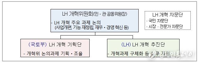 한편, 개혁위원회의 활동을 뒷받침하기 위해 국토부에 LH 개혁 기획단을, LH에는 LH 개혁 추진단을 각각 설치·운영한다.