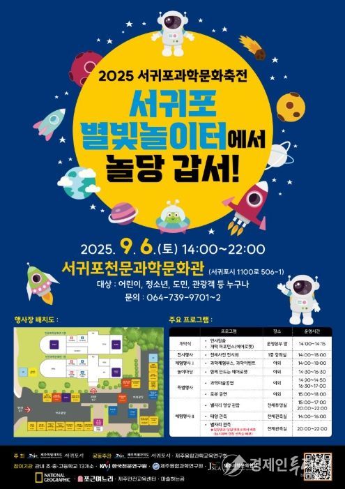 경제인투데이 류현민 기자 | 서귀포시는 '2025 서귀포과학문화축전'을 오는 9월 6일 14시부터 22시까지 서귀포천문과학문화관(서귀포시 1100로 506-1)에서 개최한다.