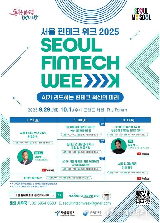 또한 서울시·카이스트·한국지급결제학회가 공동 주최하고, 한국인터넷기업협회가 주관하는 ‘서울 디지털금융 미래 포럼’에서는 공공·산업·학계 전문가들이 인공지능과 디지털금융의 발전 전략을 논의한다.