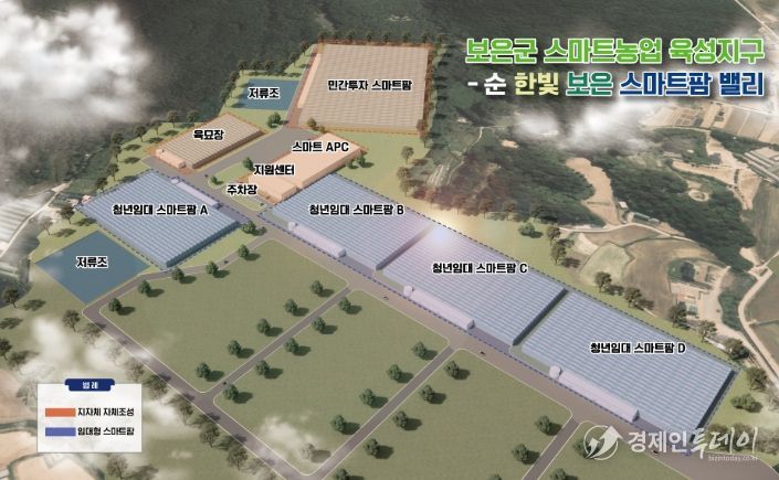 군은 공모사업 선정을 통해 총사업비 39억 5000만원 중 국비 20억원을 확보해 보은군 장안면 일원에 5.7ha 규모로 조성되는 스마트원예단지에는 스마트온실 3.1ha, 공동육묘장 0.92ha, 스마트APC 1동, 지원센터 등이 조성된다. 향후‘스마트농업 육성지구’지정 추진을 통한 4ha 규모의 임대형 스마트팜 조성까지 이어가 집적화·규모화를 단계적으로 확장 추진한다는 계획이다.