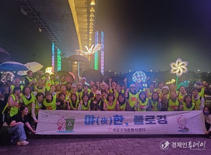 경제인투데이 류현민 기자 | 인천 계양구자원봉사센터는 지난 24일 저녁, ‘계양아라온 아트웨이(빛의 거리 3단계)’와 ‘가을꽃 국화축제’가 열리는 현장에서 자원봉사자 74명과 함께 ‘야(夜)한 플로깅’ 봉사활동을 진행했다.