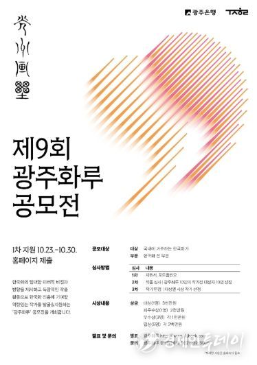 2017년부터 시작해 올해로 9회째를 맞은 ‘광주화루’는 국내 최대 규모의 한국화 공모전으로, 오는 10월 23일부터 30일까지 광주화루 홈페이지를 통해 온라인 접수를 진행한다.