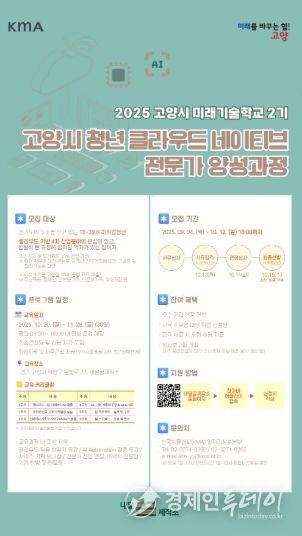 한편고양시는 오는 10월부터 '미래기술학교 2기 – 고양시 청년 클라우드 네이티브 전문가 양성과정'을 운영할 예정으로, 9월 4일부터 10월 12일까지 잡아바 어플라이를 통하여 교육생을 모집한다.