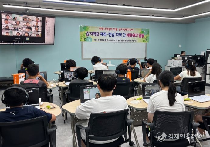 경제인투데이 류현민 기자 | 제주도교육청 하례초등학교는 9월 30일 전남 순천인안초등학교와 함께 비대면 화상회의 플랫폼(ZOOM)을 활용해 생태관광을 주제로 공동수업을 진행했다.