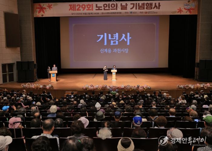 경제인투데이 류현민 기자 | 과천시는 2일 시민회관 대극장에서 ‘제29회 노인의 날 기념식’을 열었다. 시가 주최하고 과천시노인복지관이 주관한 가운데 열린 이날 행사에는 지역 어르신 1천1백여 명이 참석했다.