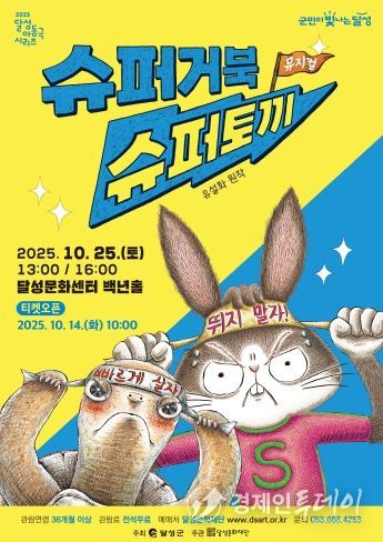 경제인투데이 류현민 기자 | 달성문화재단은 오는 25일 오후 1시와 4시, 달성문화센터 백년홀에서 ‘2025 달성 아동극 시리즈’의 다섯 번째 공연 ‘슈퍼거북 슈퍼토끼’를 개최한다고 밝혔다.