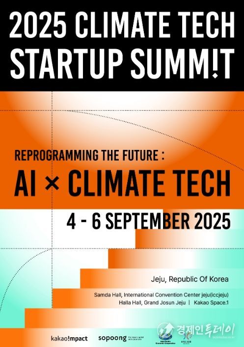 경제인투데이 류현민 기자 | 중소벤처기업부는 'APEC 중소기업 장관회의'의 공식 연계행사로 카카오임팩트(이사장 류석영), 소풍벤처스(대표 한상엽)와 함께 ‘2025 기후테크 스타트업 서밋’(9.4~9.6)을 제주국제컨벤션센터 삼다홀 등에서 개최한다고 밝혔다.
