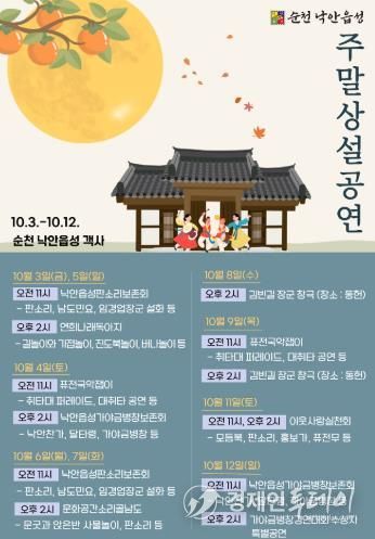 경제인투데이 류현민 기자 | 순천시는 순천 낙안읍성에서 '주말 상설공연'과 '김빈길 장군 창극' 공연을 오는 10월 3일부터 12일까지 선보인다고 밝혔다.