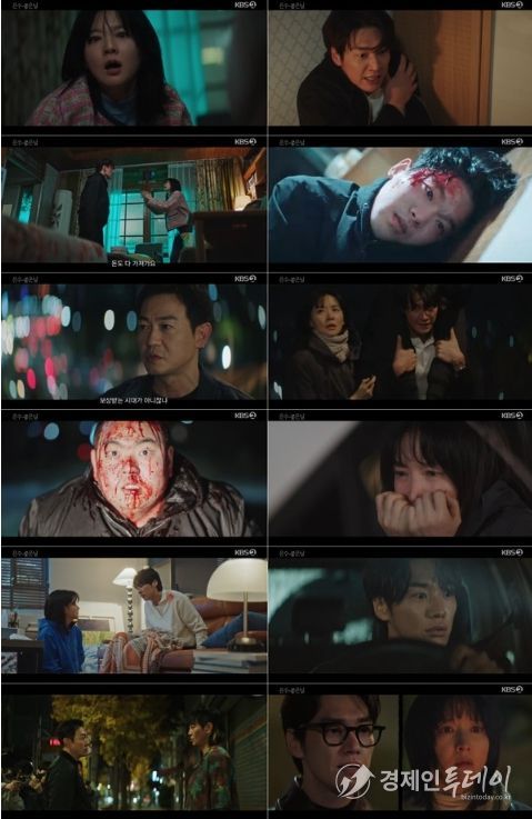 어제 방송에서 동현, 준현 형제에게 결박당한 은수와 이경은 이불 속에 숨겨둔 약까지 들통나며 벼랑 끝에 내몰렸다. 이경은 칼에 찔린 채 피투성이가 된 상태에서도 끝까지 저항했고, 찢어진 복면 사이로 동현의 얼굴을 확인한 은수는 경악했다.