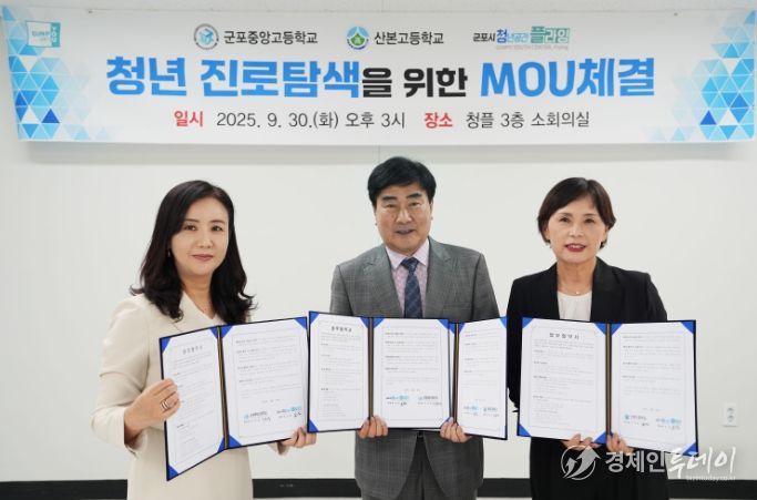경제인투데이 류현민 기자 | 군포시 청년공간플라잉(센터장 조남)은 지난 9월 30일 군포중앙고(교장 이은경), 산본고(교장 김은정)와 함께 2025 창업스쿨 사업 관련 업무협약을 맺었다.