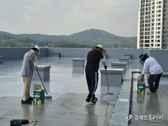 파주교육지원청은 최근 집중호우에 따른 옥상 누수로 교실과 복도에 빗물이 누수된 심학중학교에 현장지원팀을 지원하여 2회에 걸쳐 직접 옥상방수 보수공사를 실시하는 등 현장지원에 노력하고 있다.