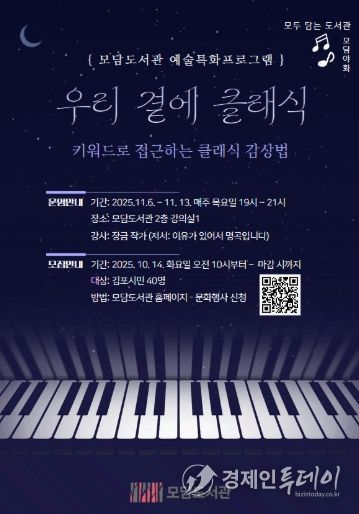 경제인투데이 류현민 기자 | 김포시 모담도서관은 클래식을 주제로 11월 6일부터 13일까지 매주 목요일 오후 7시부터 9시까지 특별 강연을 운영한다.