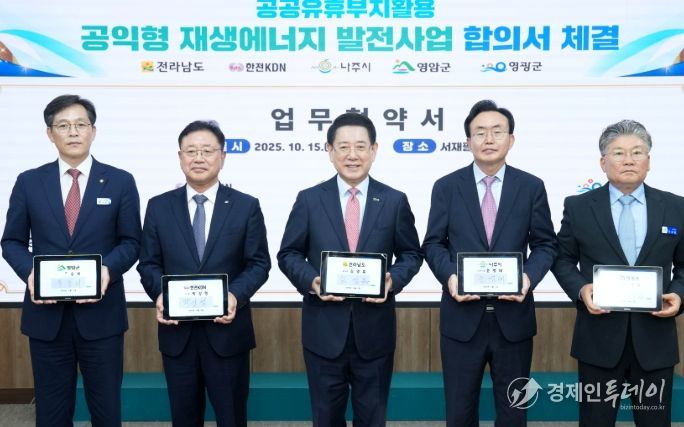경제인투데이 류현민 기자 | 전라남도는 15일 새정부의 재생에너지 대전환 기조와 재생에너지 보급 확대 정책에 따라 나주시, 영광군, 영암군, 한전KDN과 탄소중립 실현·에너지 기본소득 실현을 위한 ‘공익형 재생에너지 발전사업’ 업무협약을 했다고 밝혔다.