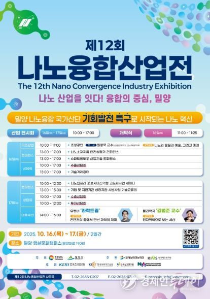 경제인투데이 류현민 기자 | 경상남도는 오는 16일부터 17일까지 이틀간 밀양햇살문화캠퍼스에서 ‘나노산업을 잇다! 융합의 중심, 밀양’을 주제로 제12회 나노융합산업전(나노피아 2025)을 개최한다고 밝혔다.