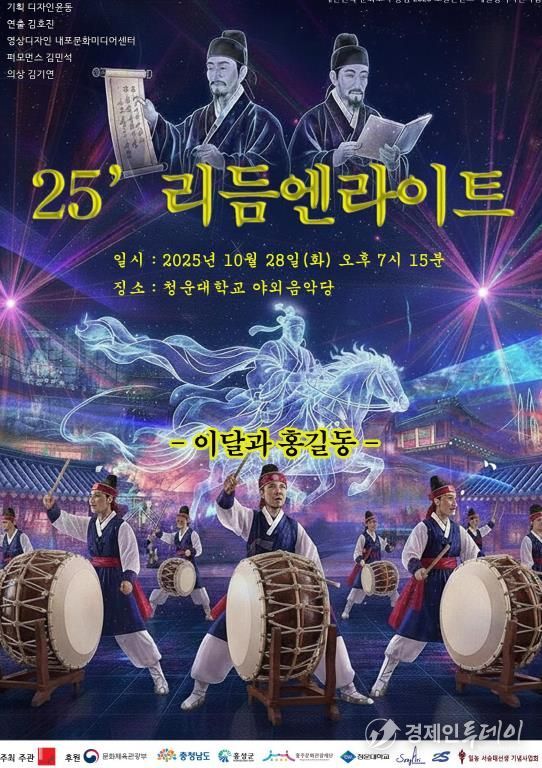 경제인투데이 류현민 기자 | 홍주문화관광재단은 오는 28일 오후 7시, 청운대학교 야외음악당에서 ‘25’ 리듬엔라이트(부제: 이달과 홍길동)’ 공연을 통해 홍성의 역사적 인물들과 문화유산을 새로운 시각으로 재조명하며, 지역 기반 예술 콘텐츠의 발전을 도모한다.