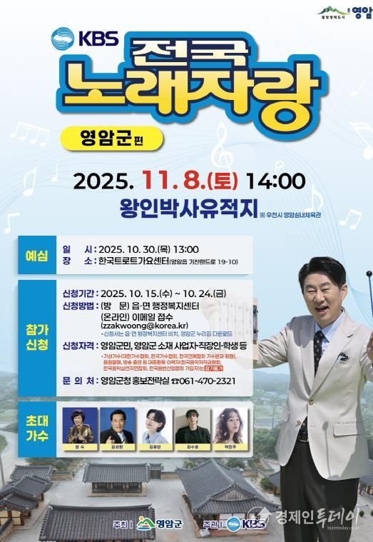경제인투데이 류현민 기자 | 영암군이 KBS전국노래자랑 예심 참가자를 15~24일 선착순 300명 모집한다.