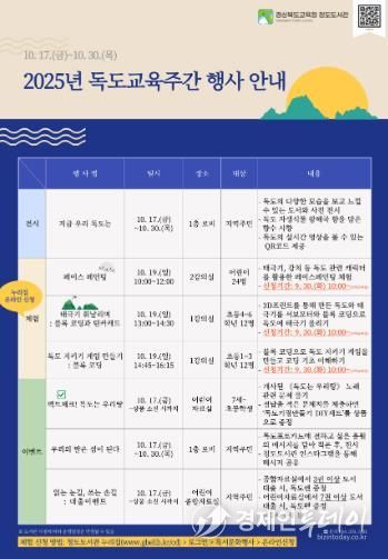 경제인투데이 류현민 기자 | 경상북도교육청 청도도서관은 오는 10월 17일부터 30일까지 지역 주민을 대상으로 '2025년 독도교육주간 행사'를 운영한다.