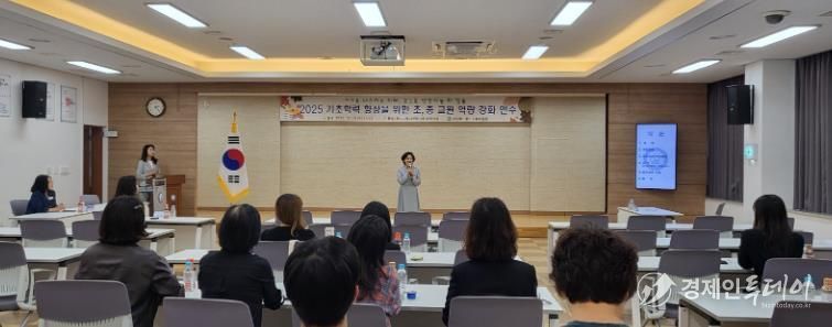 경제인투데이 류현민 기자 | 청도교육지원청은 2025년 10월 15일, 관내 초, 중등 교원 34명을 대상으로 대구교육대학교 이민혜 교수님을 모시고‘학습지원대상학생의 학습된 무기력 극복과 자기조절학습능력 향상 방안’이라는 주제로 기초학력 향상을 위한 초, 중등 교원 연수회를 진행했다.