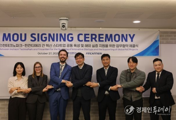 경제인투데이 류현민 기자 | 인천테크노파크(인천TP)는 27일 인천스타트업파크에서 이탈리아 국영 조선사 핀칸티에리(Fincantieri)와 ‘혁신 스타트업 육성 및 해외 실증 지원’에 상호 협력 내용으로 업무협약을 체결했다.