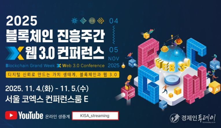 경제인투데이 류현민 기자 | 과학기술정보통신부는 블록체인과 웹 3.0 기술이 주도할 새로운 금융질서와 디지털 신뢰 사회의 미래상을 국민과 공유하고, 전 세계 기술 및 산업의 변화 흐름에 선제적으로 대응하기 위해 오는 11월 4일과 5일, 양일간 서울 코엑스 컨퍼런스룸E에서 ‘2025 블록체인 진흥주간 × 웹 3.0 학술대회(컨퍼런스)’를 개최한다고 밝혔다.