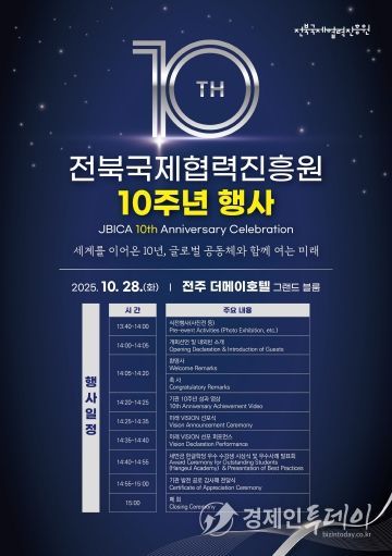 경제인투데이 류현민 기자 | 전북국제협력진흥원은 10월 28일 전주 더메이 호텔에서 창립 10주년 기념행사를 성황리에 개최하고, 향후 10년을 이끌어갈 ‘VISION 2035’를 공식 선포했다.