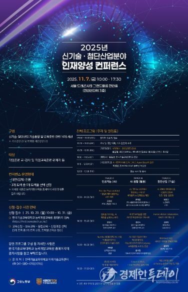 경제인투데이 류현민 기자 | 한국기술교육대학교(KOREATECH·총장 유길상)는 7일(금) 서울드래곤시티 한라홀에서 직업훈련교·강사 및 직업교육훈련 관계자 350여 명이 참석한 가운데 ‘2025년 신기술·첨단산업분야 인재양성 콘퍼런스’를 성황리에 개최했다.