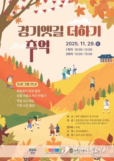 경제인투데이 류현민 기자 | 경기문화재단 경기역사문화유산원는 오는 11월 29일 토요일, 의주길에 위치한 파주 혜음원지 일대에서 초등학생 이상 자녀를 둔 가족을 대상으로 하는 역사 체험 프로그램 ‘경기옛길 더하기 추억’을 개최한다고 밝혔다.
