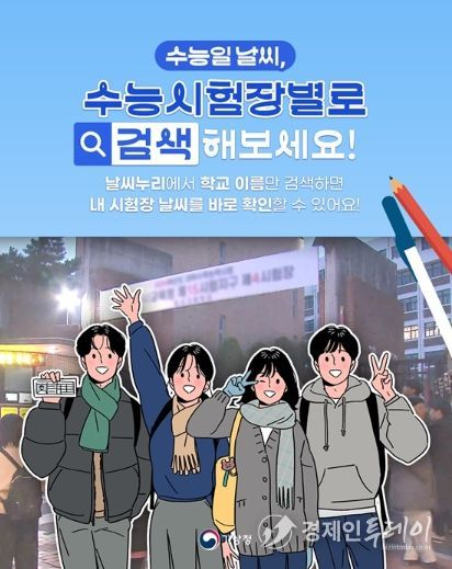 경제인투데이 류현민 기자 | 날씨누리에서 학교 이름만 검색하면 내 시험장 날씨를 바로 확인할 수 있어요!