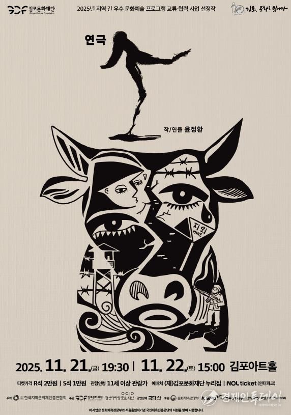 경제인투데이 류현민 기자 | (재)김포문화재단은 오는 11월 21일부터 22일까지 이틀동안 김포아트홀에서 연극 '소' 공연을 개최한다고 밝혔다.