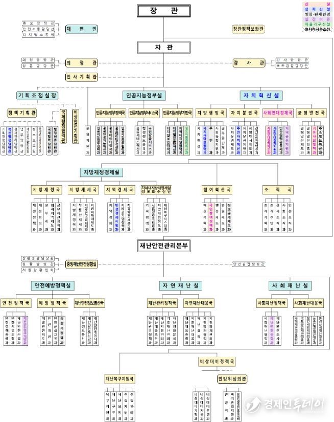 경제인투데이 류현민 기자 | 행정안전부는 인공지능(AI), 지방정부 및 국민안전 정책 수준을 한단계 더 높이고, 국정과제 추진동력을 강화하기 위한 조직개편을 실시했다고 밝혔다.