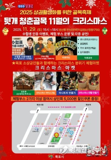 경제인투데이 류현민 기자 | 목포시는 오는 11월 29일(토) 온누리어린이공원에서 ‘뒷개 청춘골목 11월의 크리스마스’를 개최한다.