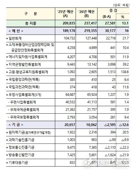 경제인투데이 류현민 기자 | 과학기술정보통신부는 정부안 대비 746억원 증액된 총 23조 7,417억원 규모의 과기정통부 2026년도 정부 예산 및 기금운용계획이 12월 2일 국회 본회의 의결을 통해 최종 확정됐다고 밝혔다.