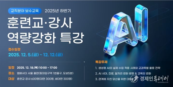 사전 신청은 5일부터 12일까지 능력개발교육원 누리집에서 할 수 있으며, 참가비는 전액 무료다. 또한 보수교육(전문) 6시간이 인정된다.