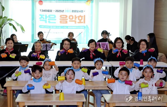 이날 음악회의 하이라이트는 어르신과 아이들이 함께 무대에 서는 세대 통합 공연이었다. 지난 9월부터 진행된 ‘1·3세대 하모니 컵 난타 교육’을 통해 어르신과 5~6세 유아가 함께 연습한 공연을 선보이며 큰 박수를 받았다.