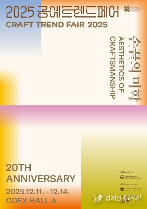 경제인투데이 류현민 기자 | 문화체육관광부는 한국공예·디자인문화진흥원과 함께 12월 11일부터 14일까지 코엑스(서울 강남구)에서 ‘손끝의 미학’을 주제로 ‘2025 공예트렌드페어’를 열어 공예의 다양성과 시장성을 조명한다. 개막식은 행사 첫날인 12월 11일 오후 5시에 열리며, 이 자리에서 올해의 공예상 시상식도 함께 진행한다. ‘올해의 공예상’ 수상자로는 창작 부문에서 오화진 작가(섬유), 이론 부문에서 강재영 전시기획자를 선정했다.