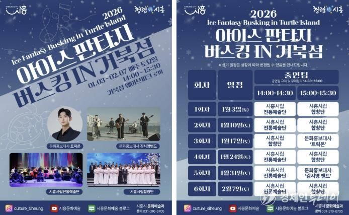 경제인투데이 류현민 기자 | 시흥시는 지난 연말에 진행된 ‘2025 시흥 사운드 오브 윈터’의 열기를 잇는 후속 문화예술 프로그램으로, 겨울철 거북섬을 찾는 시민과 관광객에게 풍성한 즐길 거리를 제공하고자 ‘2026 아이스 판타지 버스킹 인 거북섬’을 운영한다.