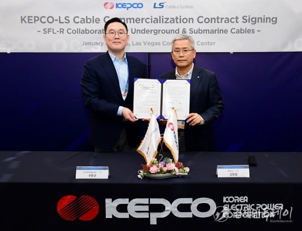 한전은 1월 6일(화) CES 2026 행사가 개최되는 미국 라스베가스에서 한전의 지중·해저케이블 상태판정 기술 SFL-R(Smart Fault Locator-Real Time, 실시간 탐지 기술)의 사업화 협력과 글로벌 시장 공동 진출을 위해 LS전선과 계약을 체결했다. 체결식에는 한전 김동철 사장과 LS전선 구본규 사장 등 양사 경영진이 참석했다.