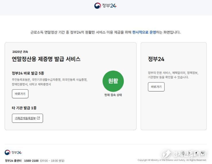 경제인투데이 류현민 기자 | ‘정부24’에서 2025년 귀속 연말정산에 필요한 주민등록등본 등 5종의 증명서를 평소보다 더 간편하게 발급받을 수 있다.