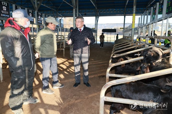 경제인투데이 류현민 기자 | 예천군은 14일 오전, 예천가축시장에서 열린 ‘2026년 새해 첫 염소 경매’ 현장을 찾아 출하 상황을 점검했다.