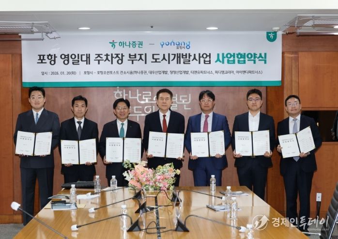 포항시는 20일 서울 여의도 하나증권 본사 사옥에서 영일대해수욕장 공영주차장 부지를 활용한 도시개발사업에 대한 사업협약을 체결했다.
