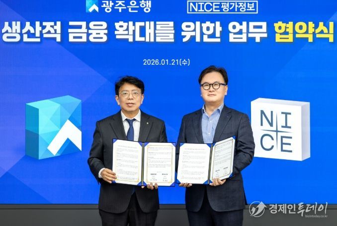 경제인투데이 류현민 기자 | 광주은행은 21일, 광주은행 본점에서 NICE평가정보㈜와 지역 산업 경쟁력 강화를 위한 ESG 데이터 기반 ‘생산적 금융 확대 업무협약(MOU)’을 체결했다고 밝혔다.