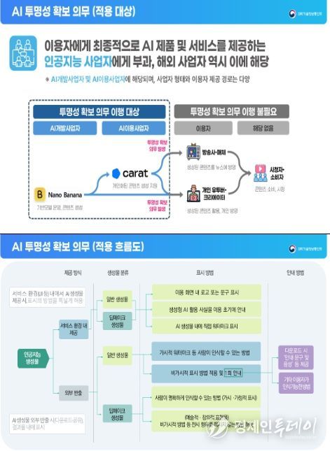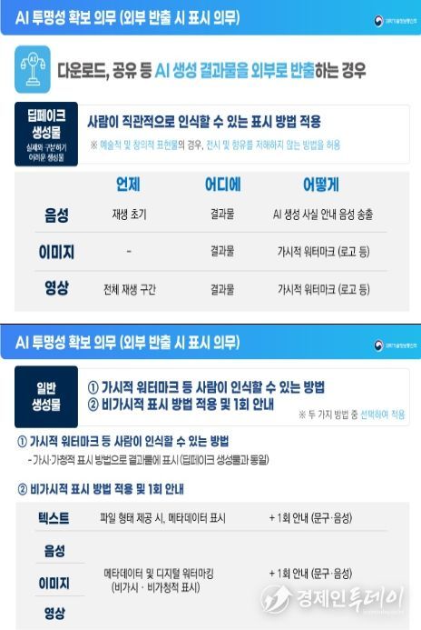 경제인투데이 류현민 기자 | 과학기술정보통신부는 1월 22일'인공지능 발전과 신뢰 기반 조성 등에 관한 기본법' ‘인공지능 기본법’)상 투명성 확보 의무(제31조)의 구체적인 이행 방안을 담은'인공지능 투명성 확보 안내 지침(가이드라인)'을 공개했다.