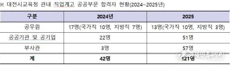 경제인투데이 류현민 기자 | 대전시교육청은 2025년 관내 직업계고 학생들의 공무원, 공공기관 및 공기업, 군부사관 합격 현황을 분석한 결과, 총 121명이 합격하며 전년 대비 비약적인 성장을 기록했다고 밝혔다.
