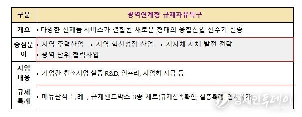 중기부는 광역연계형 규제자유특구의 실질적인 성과 창출을 위해 규제완화뿐만 아니라 실증 R&D와 관련 인프라 구축을 지원하고, 실증결과를 기반으로 한 신제품·서비스의 시장 진출을 촉진하기 위해 사업화 지원도 병행한다.