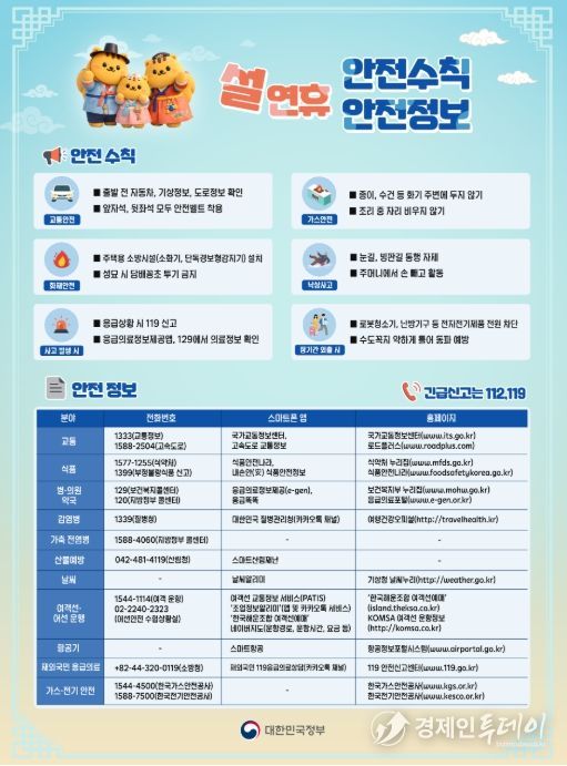 행정안전부는 국민께서 안전하고 편안한 설 명절을 보낼 수 있도록 지방정부와 함께 24시간 상황관리체계를 유지하고, 취약시설을 중심으로 사전 안전점검을 지속적으로 실시할 계획이다.