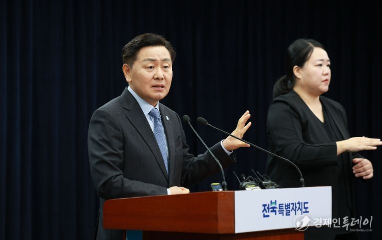 김관영 전북자치도지사는 9일 도청 브리핑룸에서 기자회견을 열고 “전북을 대한민국 AI로봇 실증·산업화 거점으로 육성하겠다”며 ‘AI로봇 산업 클러스터 조성계획’을 발표했다.