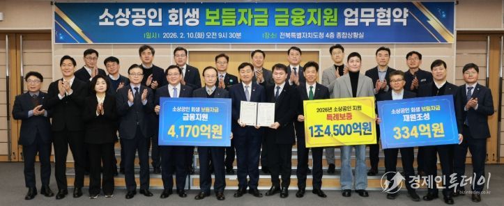 도는 10일 도청에서 김관영 도지사를 비롯해 한종관 전북신용보증재단 이사장, 11개 시군, 8개 금융기관, 소상공인연합회가 참석한 가운데 ‘2026년 소상공인 회생 보듬자금 지원사업’ 업무협약을 체결했다.