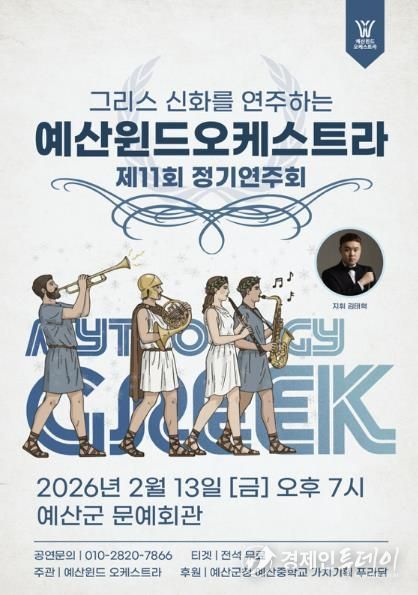 예산오케스트라 관계자는 “관악과 타악이 만들어내는 음악으로 그리스 신화의 장면을 여행하는 시간이 되길 바란다”며 “군민 여러분의 많은 관심과 관람을 부탁드린다”고 당부했다.