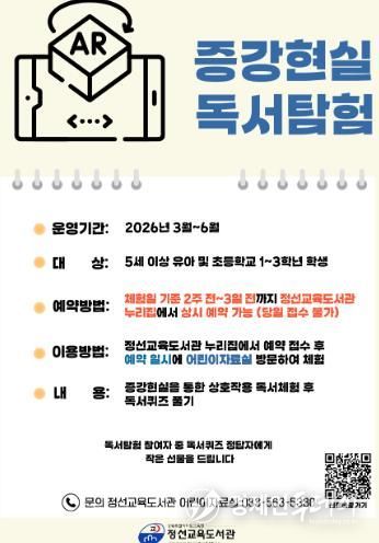 경제인투데이 류현민 기자 | 정선교육도서관은 2026년 3월 4일부터 6월 30일까지 어린이자료실에서 5세 이상 유아 및 초등학생 1~3학년을 대상으로 ‘인공지능 독서 체험’을 운영한다고 밝혔다.